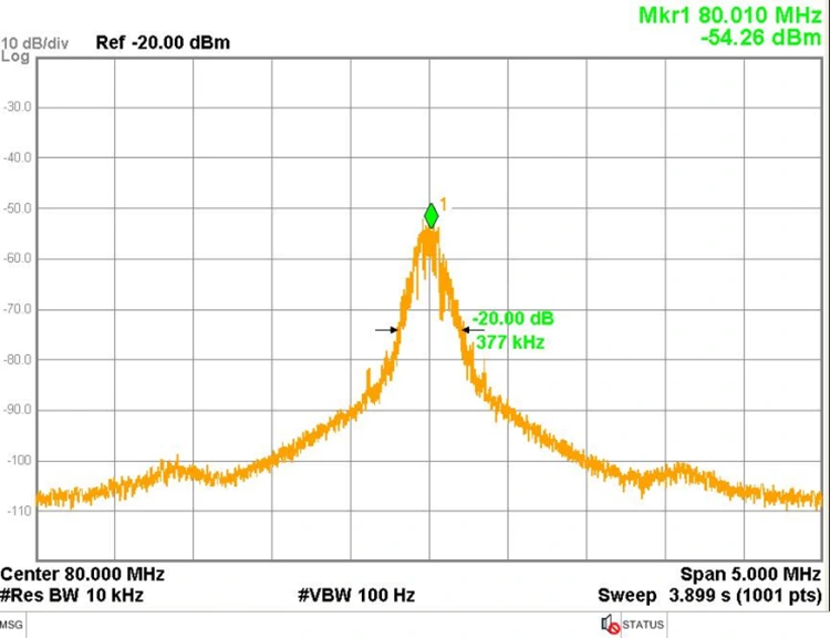 3 dB hat genişliği = 20 dB/20 vuruş frekansı hat genişliği