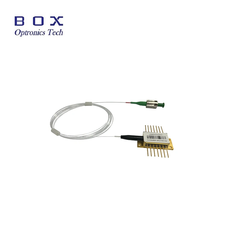 Box Optronics предлагает высококачественный лазер Лазерный диод BTF с волоконным подключением DFB длиной волны 1532 нм для обнаружения газа C2H2. Эти устройства обеспечивают очень стабильную работу в режиме непрерывного излучения. Опционально доступны одномодовые и одномоментные оптоволоконные пигтейлы. Они оснащены встроенными охладителями термоэлектрического охладителя (ТЭО) и следящими фотодиодами. Они часто используются в оптических датчиках. 1532 нм лазерный диод с разветвлённой оптико-электронной связью (DFB) в 14-выводном корпусе BTF может использоваться в системах обнаружения ацетилена (C₂H₂).